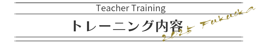 今ではヨガインストラクターの資格は簡単に取れるようになりましたが、マニアルを覚えてポーズができるという指示するだけのインストラクターではなく、自分の心の言葉で生徒にヨガを伝えることのできる先生となれるよう、技術だけではなく心を育むことを大切にしています。インストラクターを目指す方はもちろん、大切な自分の為のヨガを続けられるように、既に資格を持っている指導しているけれど自信のない方にも参加して頂きたいトレーニングです。