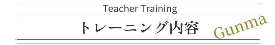 | 指導法を学ぶ | 指導理論 | 4時間 | クラスの組み立て、コールの仕方、プロのインストラクターとしての立ち居振る舞いを学びます。 |