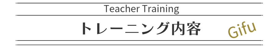 | 指導法を学ぶ | 指導理論 | 4時間 | クラスの組み立て、コールの仕方、プロのインストラクターとしての立ち居振る舞いを学びます。 |