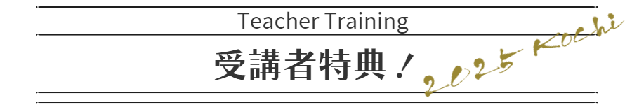 | 参加条件 | ・ヨガ経験6ケ月以上(トレーニング開始までにご経験を積んで頂ければ大丈夫です。)ご不明な点はご相談下さい。 ・参加申込み締切日:2025年3月30日(日)まで ※上記条件についてはお気軽にご相談ください。 |
