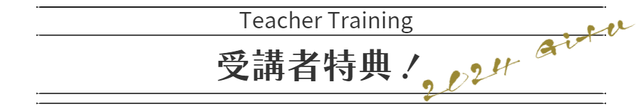 授業の大半をメイン講師は開催スタジオの先生が行いますが、授業内容によっては監修者でもあるMaoが受講者の皆様に学びのサポートも含め授業を行います。通学型のトレーニングであったとしても、多くを学んで身に付けて頂くヨガトレーニングは決して楽なものではありません。個々人の資質に合わせて寄り添えるトレーニング開催とするため、そのためにメイン指導者だけでなく様々なかたちで受講者の皆様をサポートします。