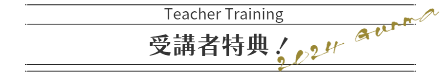 | Q3:インストラクターを目指していませんが、他の方の迷惑になりませんか? | 問題ありません。参加者が全員インストラクターを目指しているわけではありません。資格よりも自分自身の学びの為に参加を決意される方も多くいらっしゃいました。誰かに伝えるためだけでなく、自分の為に安全に自分のクラスが作れるようになる事は意味のある事です。 ヨガインストラクターという肩書きを持たなくても、必要な人に届けられる言葉や学びはたくさん得られます。 |