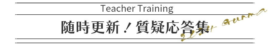 この質疑応答集は今まで開催したヨガティーチャートレーニングの受講前に頂いた内容の一部をまとめております。参考にしていただければ幸いです。